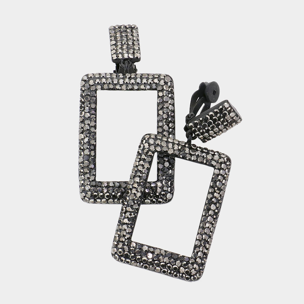 Rhinestone Embellished Open Rectangle Dangle Evening Earrings