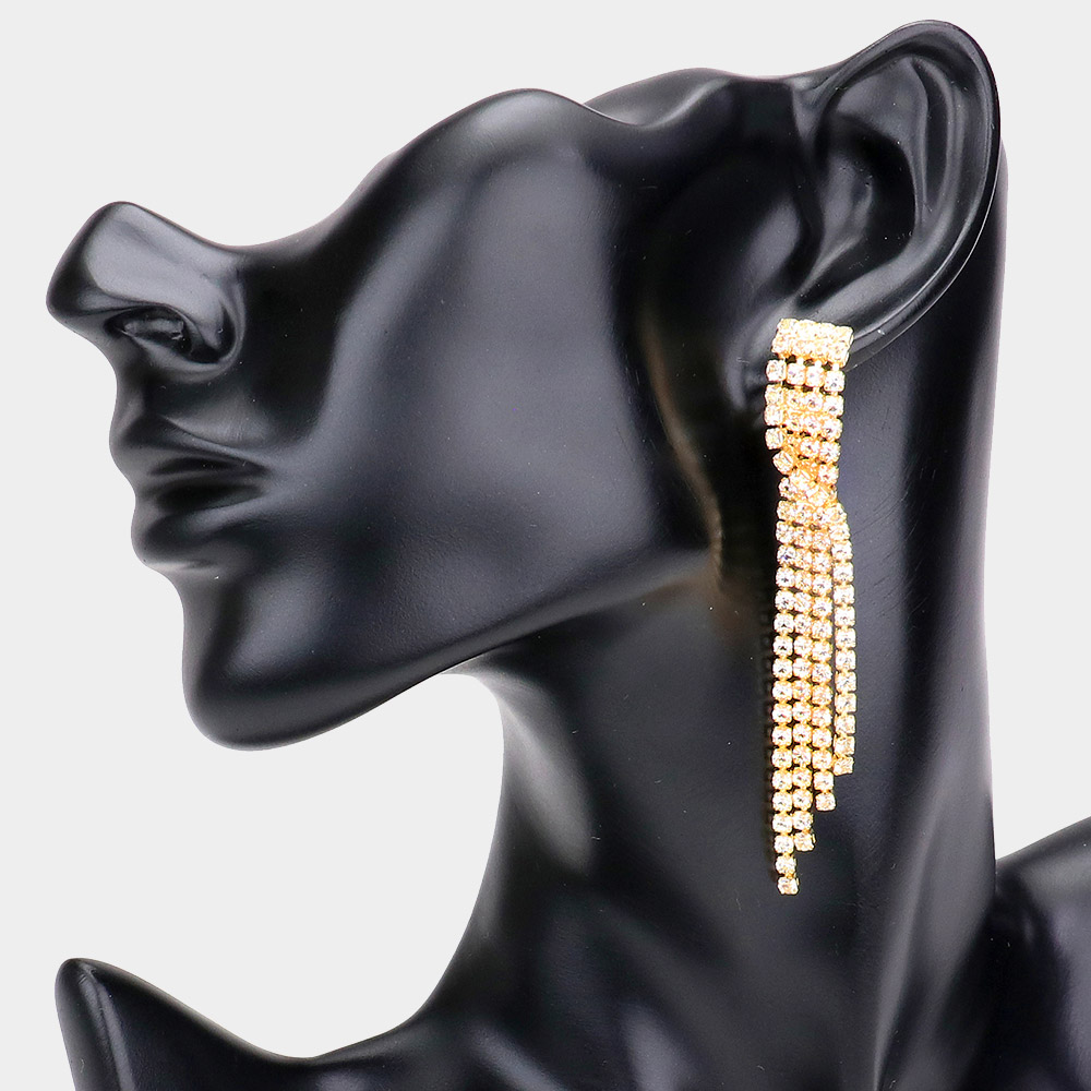 Rhinestone Fringe Dangle Evening Earrings
