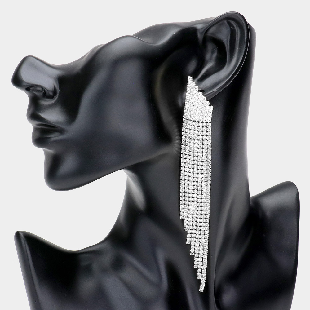 Rhinestone Fringe Long Drop Evening Earrings