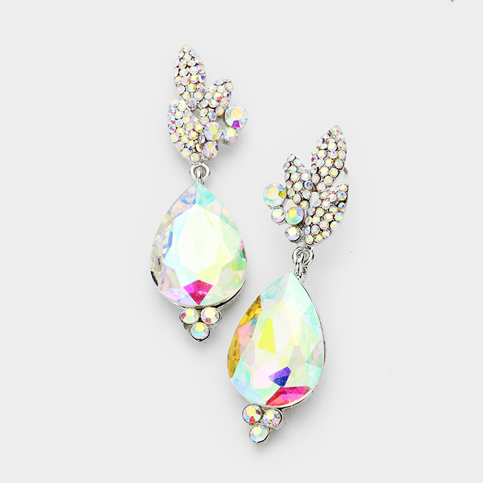 Rhinestone Pave Leaf Crystal Teardrop Evening Earrings