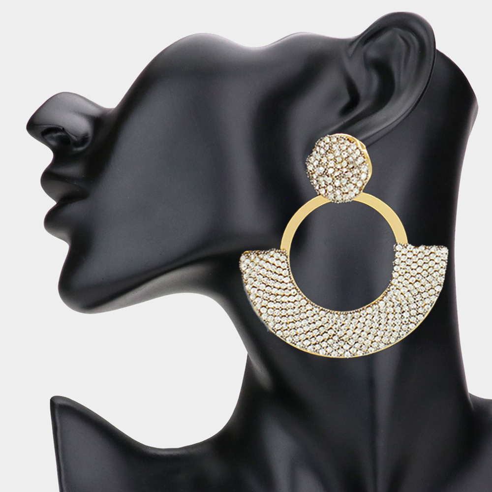 14K Gold Dipped CZ Triangle Stone Cluster Drop Earrings
