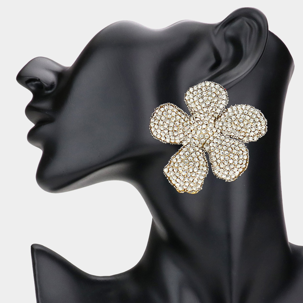 Oval Stone Center Rhinestone Studded Floral Statement Pin Brooch