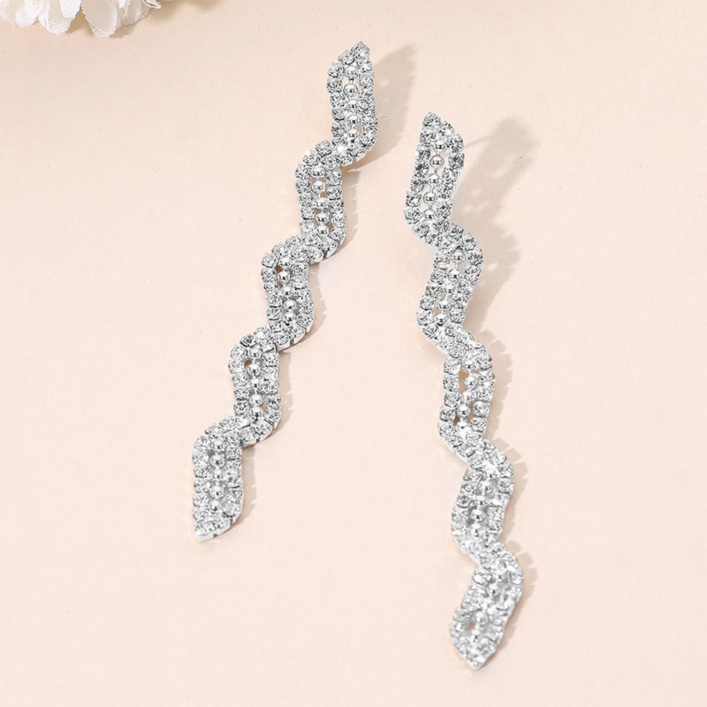 Rhinestone Paved Wavy Drop Evening Earrings Rhinestone Paved Wavy Drop Evening Earrings
