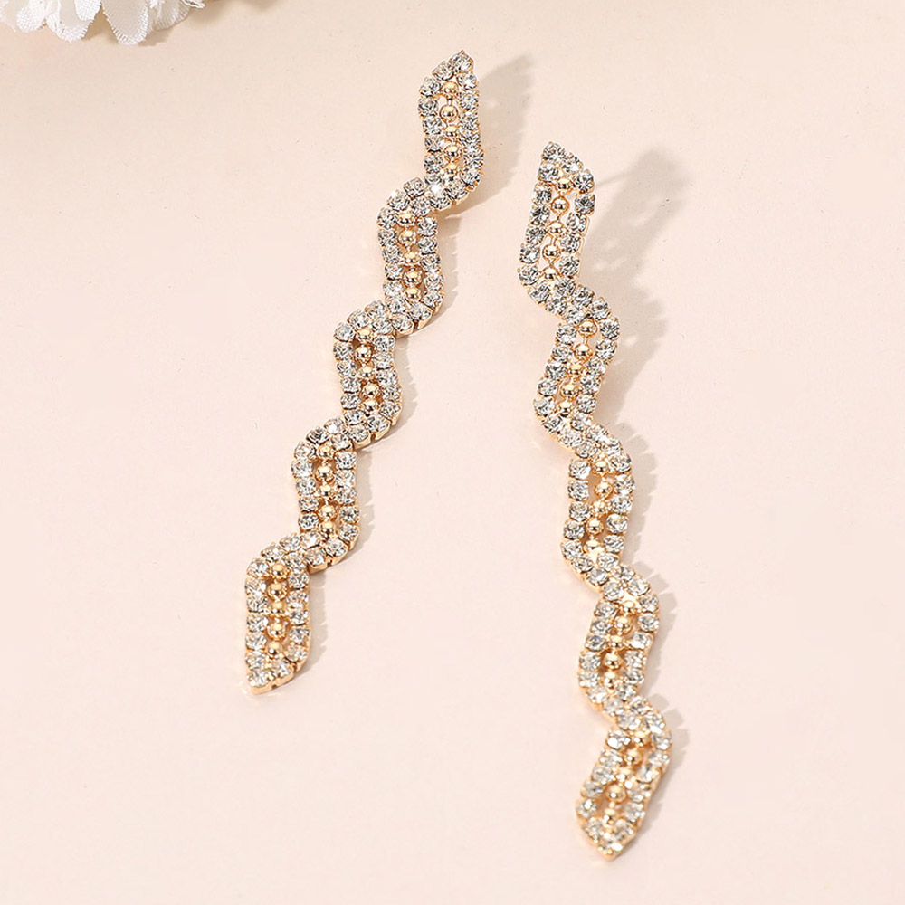 Rhinestone Paved Wavy Drop Evening Earrings Rhinestone Paved Wavy Drop Evening Earrings