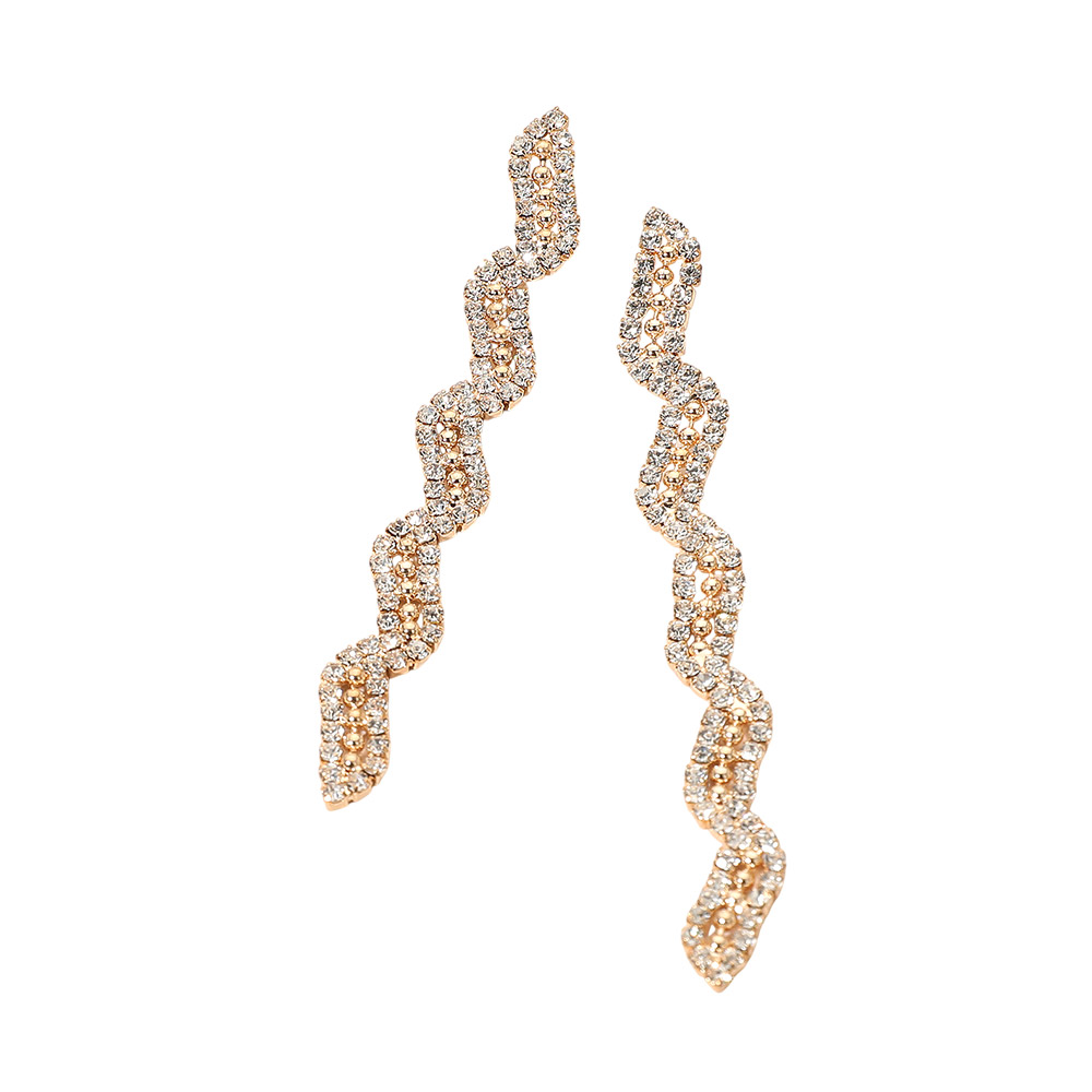 Rhinestone Paved Wavy Drop Evening Earrings
