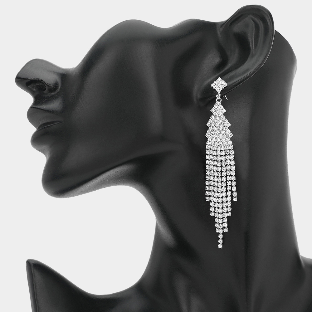 • Striking long tiered rhinestone tassel earrings featuring cascading rows of shimmering stones arranged in a layered, tapering silhouette. Designed for dramatic movement and radiant shine, they’re perfect for evening events, parties, formal occasions, or elevating any outfit with bold, elegant sparkle.