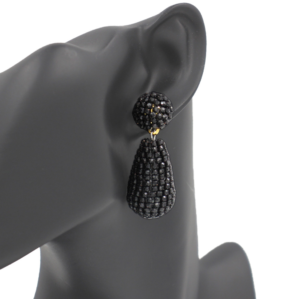 Details • Size : 0.75" X 2.1" • Post Back • Elegant teardrop crystal ball earrings with dazzling pave detailing. Designed to catch the light, these statement drop earrings are perfect for evening wear, weddings, or parties, adding sophistication and sparkle to any outfit with their bold and glamorous design. • Lead and Nickel Compliant