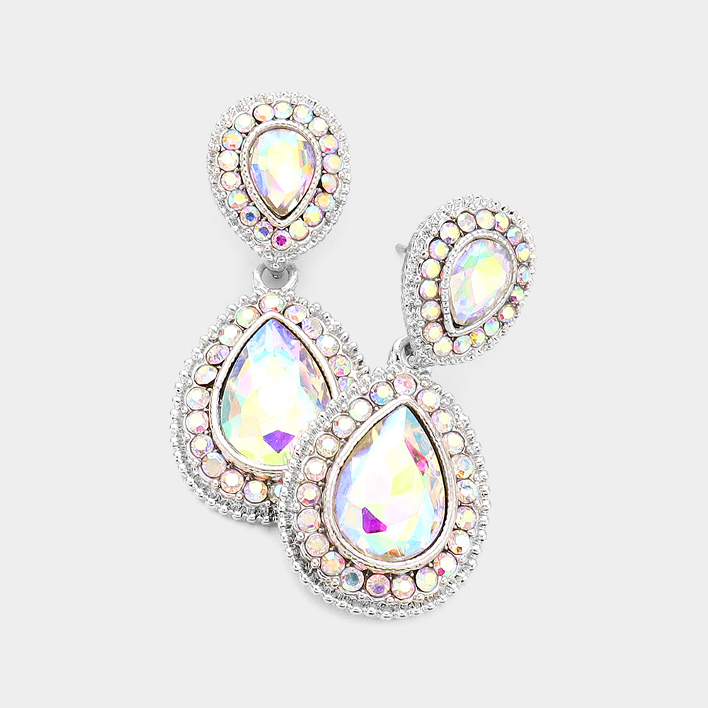 Crystal Teardrop Rhinestone Pave Evening Necklace