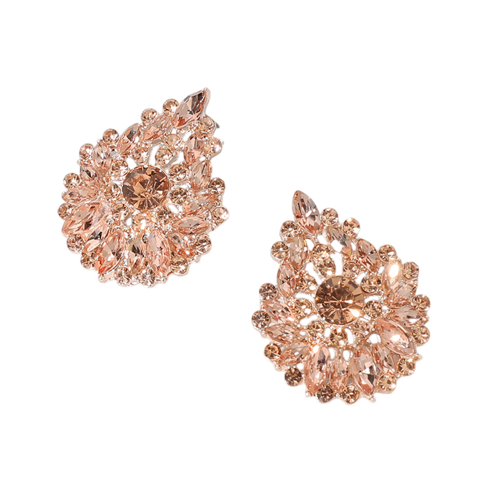 Round Marquise Stone Cluster Embellished Teardrop Evening Earrings