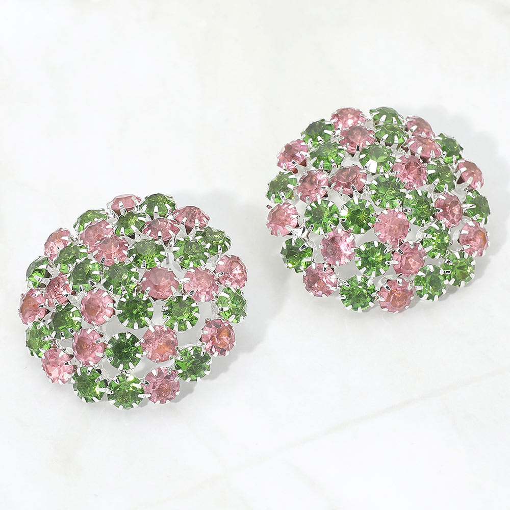 Round Rhinestone Cluster Embellished Evening Earrings