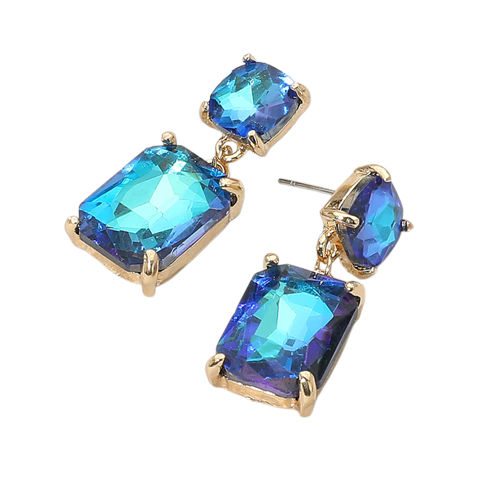 Square Rectangle Glass Stone Link Drop Dangle Earrings