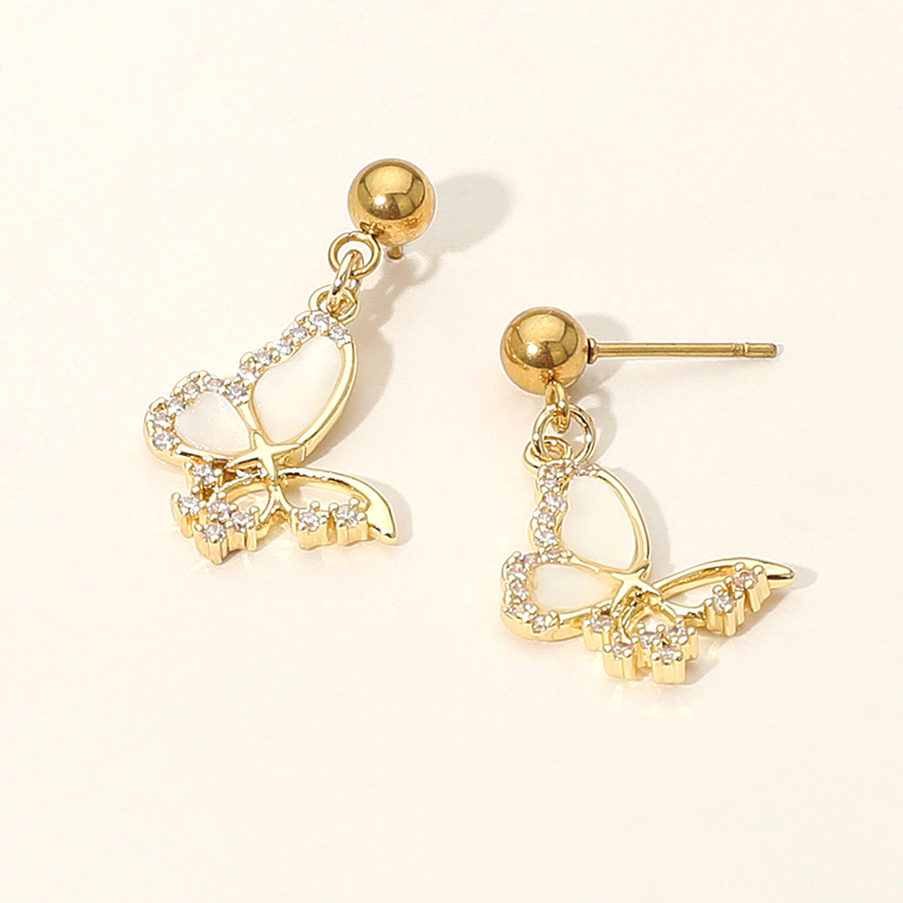 Details • Size : 0.75" X 1.1" • Post Back • Charming butterfly drop earrings adorned with sparkling CZ accents. A graceful and feminine accessory perfect for adding elegance and whimsical beauty to both casual and dressy outfits. • Lead and Nickel Compliant • CZ Cubic Zirconia • Stainless Steel