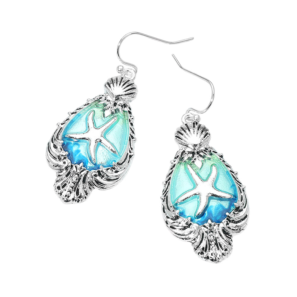 Details • Size : 0.8" X 1.8" • Fish Hook Back • These starfish shell drop earrings showcase a coastal-inspired silhouette with detailed shell framing and a bold starfish accent. Designed to stand out while remaining lightweight, they’re ideal for beach themes, summer outfits, resort wear, and giftable collections. A playful statement piece perfect for boutiques and ocean-themed jewelry assortments. • Lead and Nickel Compliant