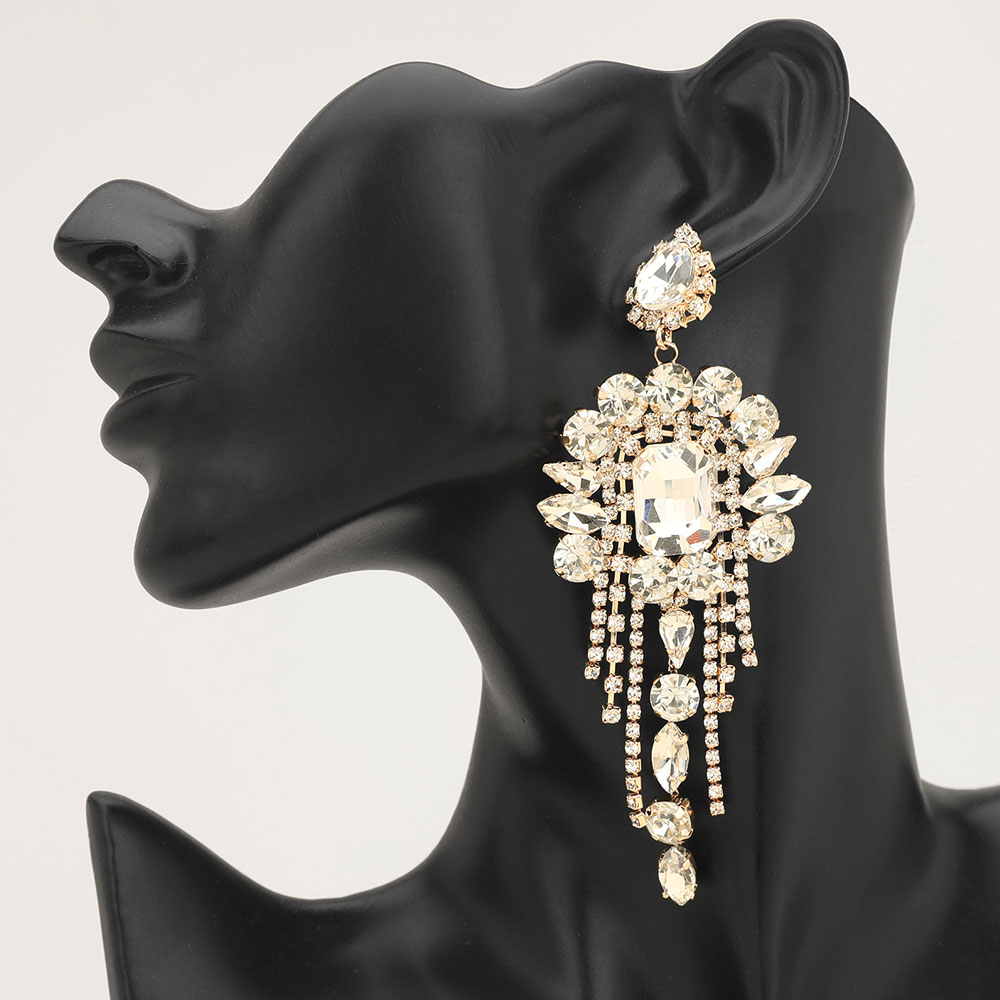 Stone Cluster Chandelier Fringe Drop Evening Statement Earrings