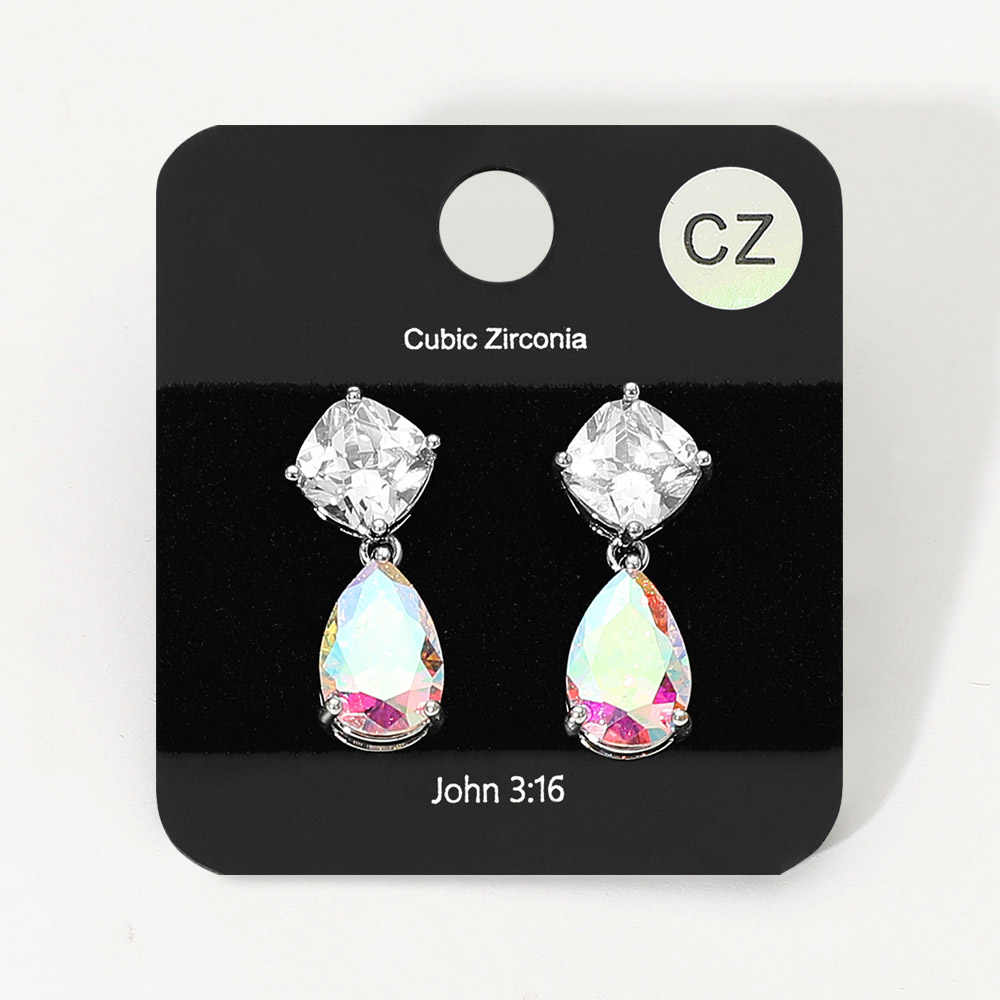 Teardrop CZ Stone Cluster Dangle Evening Earrings