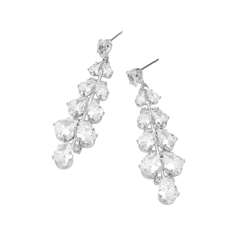 Teardrop CZ Stone Leaf Vine Drop Evening Earrings