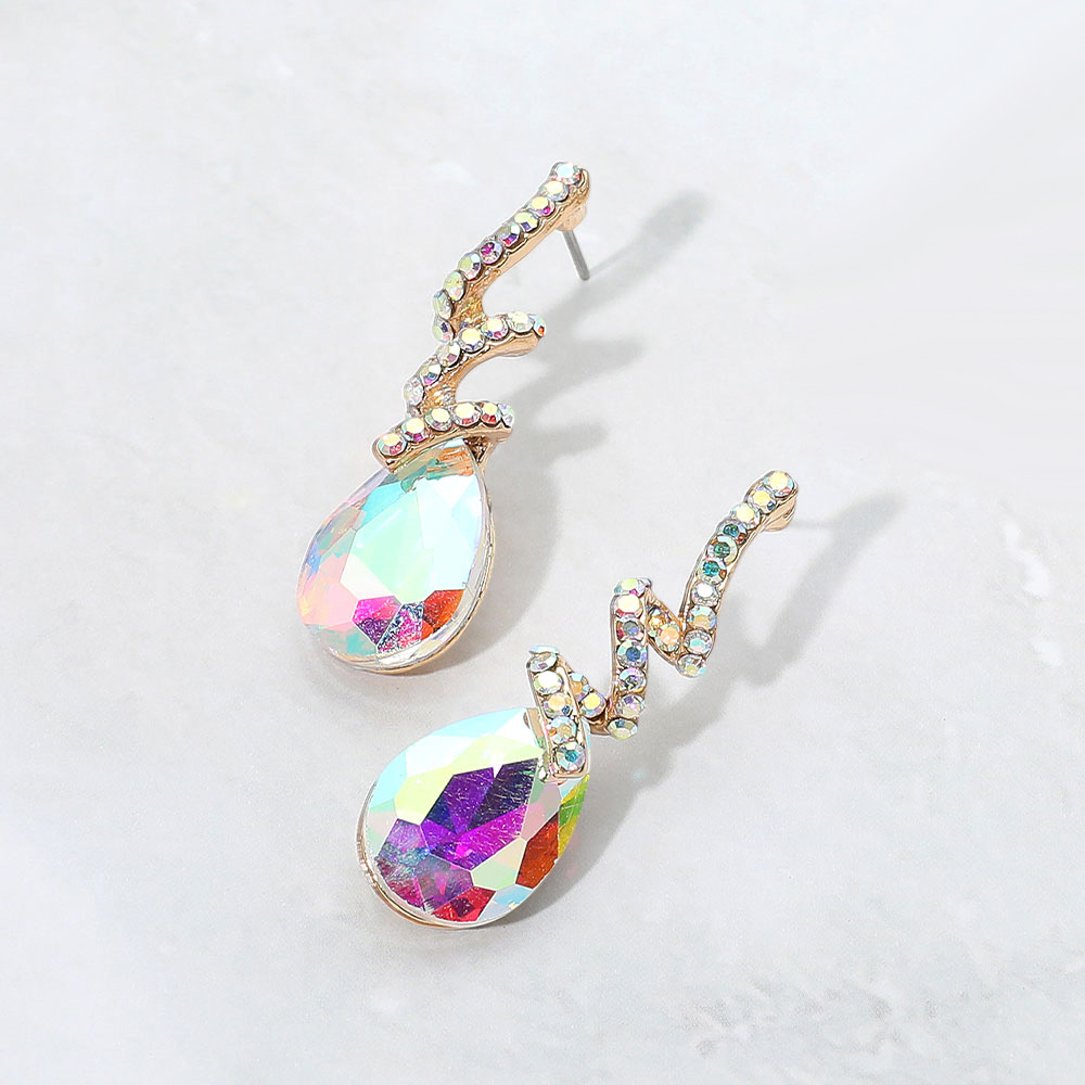 Teardrop Glass Stone Drop Stone Paved Swirl Evening Earrings