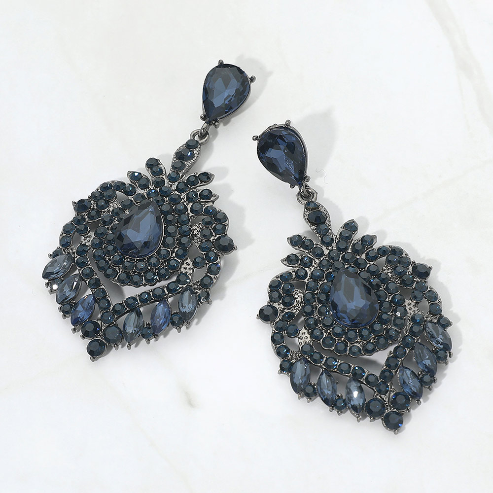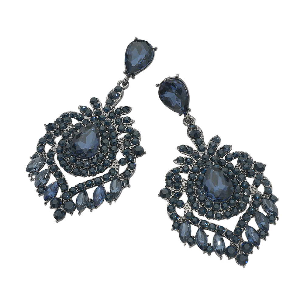 Details • Size : 1.5" X 3.1" • Post Back • These statement crystal drop chandelier earrings feature an intricate layered design with faceted accents that catch the light from every angle. Designed to elevate evening looks, weddings, and special events, they add bold sparkle and refined glamour while remaining comfortable to wear. A striking accessory that instantly enhances dresses, formal outfits, or party-ready styles. • Lead and Nickel Compliant