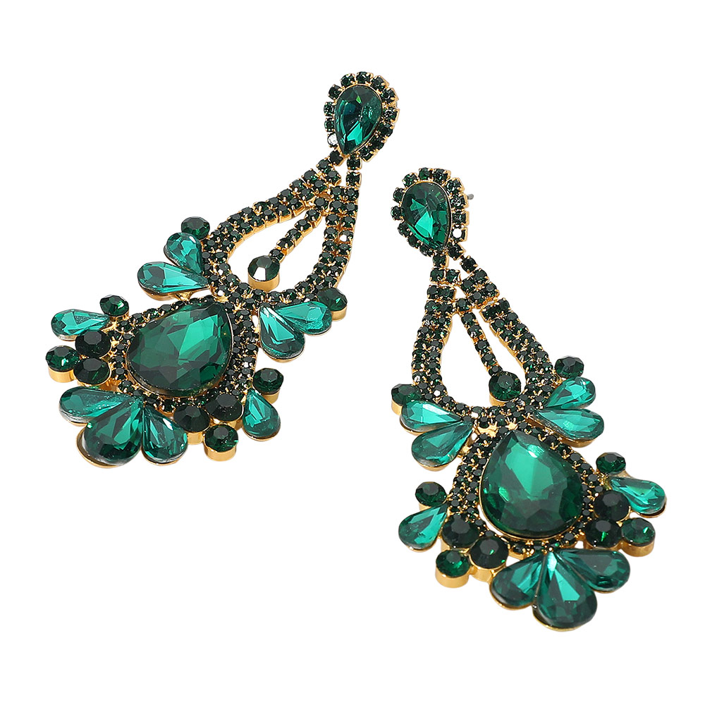 • Turn heads with these iridescent teardrop statement earrings, featuring a dazzling arrangement of shimmering stones and intricate detailing. Perfect for parties, weddings, and glamorous occasions, these earrings add a bold touch of sparkle and sophistication to any elegant look.