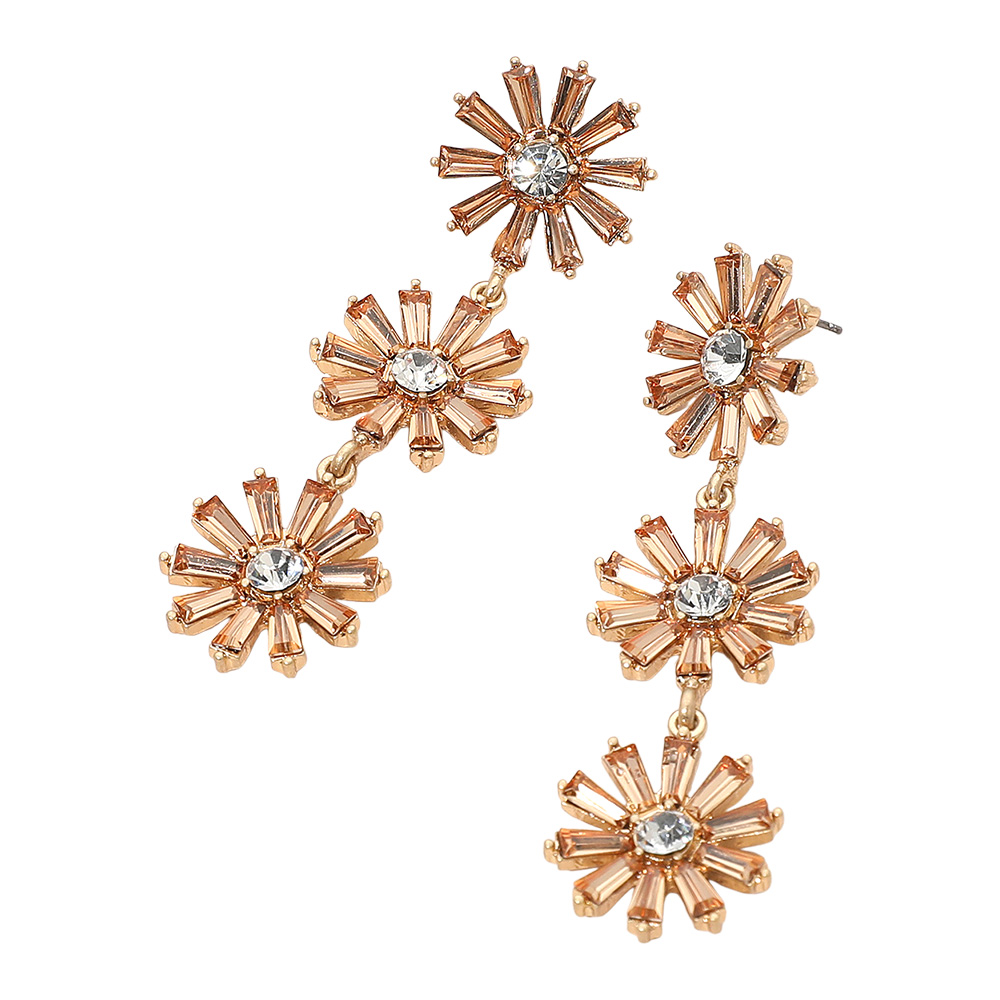 • Turn heads with these Floral Drop Earrings featuring multi-petal crystal blooms that shimmer with every move. Perfect for parties, weddings, or special occasions, these dazzling statement earrings bring elegance, energy, and bold sophistication to any outfit.