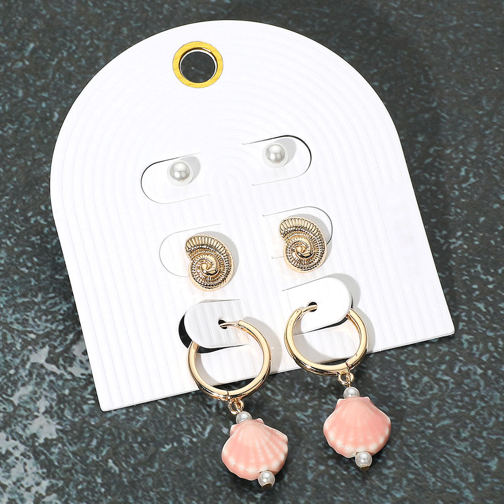 3Pairs - Pearl Metal Swirl Shell Stud Ceramic Shell Dangle Earring Set 3Pairs - Pearl Metal Swirl Shell Stud Ceramic Shell Dangle Earring Set