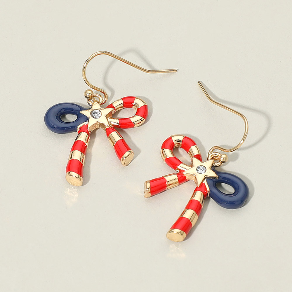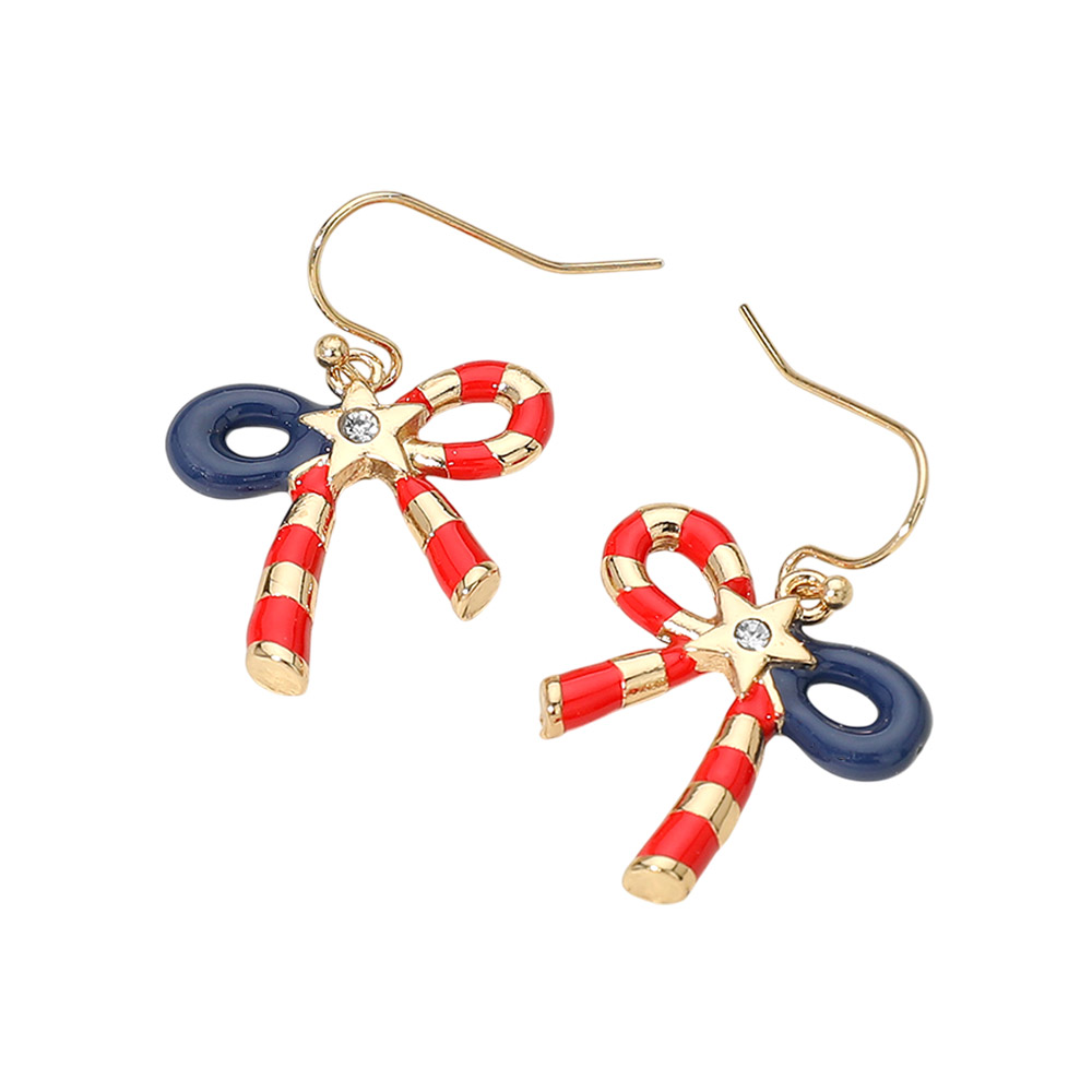 American USA Candy Cane Bow Drop Dangle Earrings