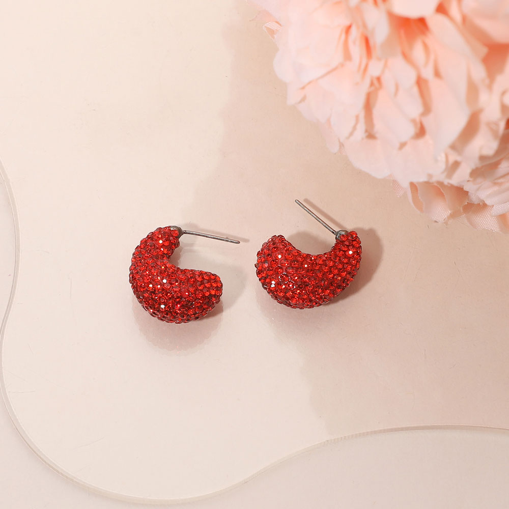 Bling Studded Small Chunky Teardrop Holiday Hoop Earrings