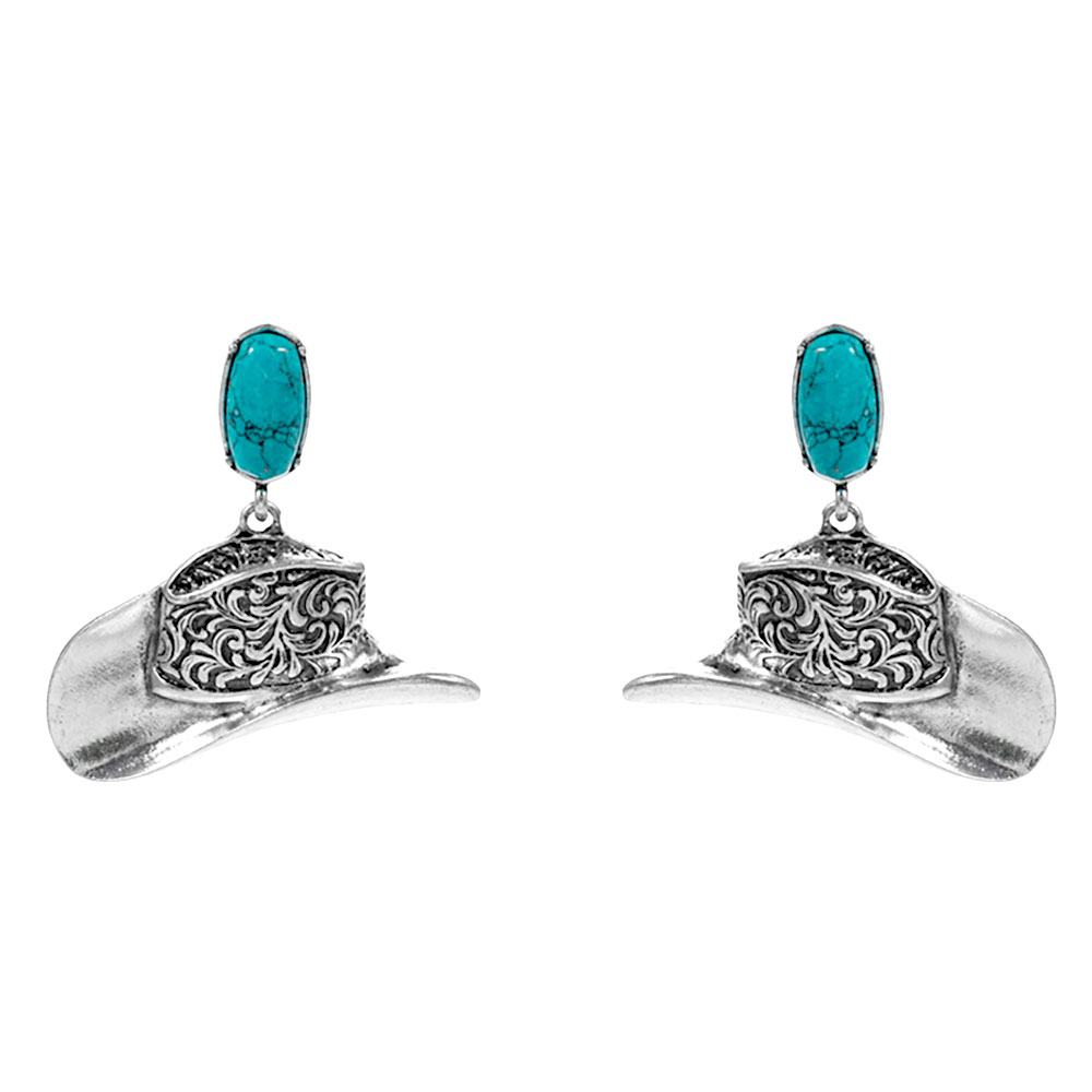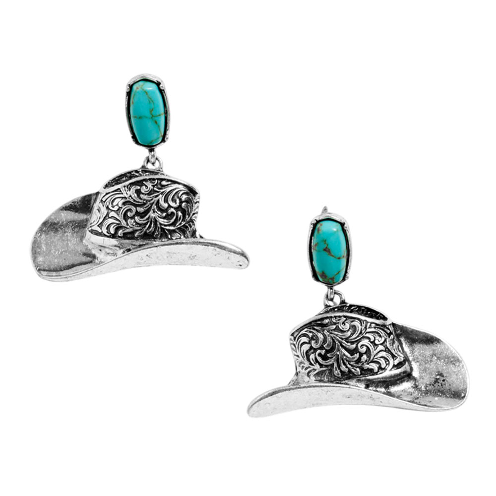 Details • Size : 1.7" X 1.6" • Titanium Post Back • Vintage-inspired western hat dangle earrings with detailed engraving and bold silhouette that bring playful charm to everyday outfits and special looks, ideal for festivals, casual styling, themed events, or as a standout gift for lovers of unique statement accessories. • Hypoallergenic • Lead and Nickel Compliant