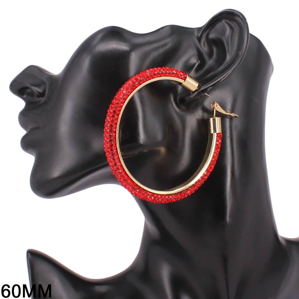 • Statement hoop earrings designed with a sleek curved silhouette and fully embellished surface for maximum shine. The bold 60mm size creates instant impact while remaining lightweight and comfortable for extended wear. Ideal for parties, festivals, night events, and trend-forward jewelry collections.