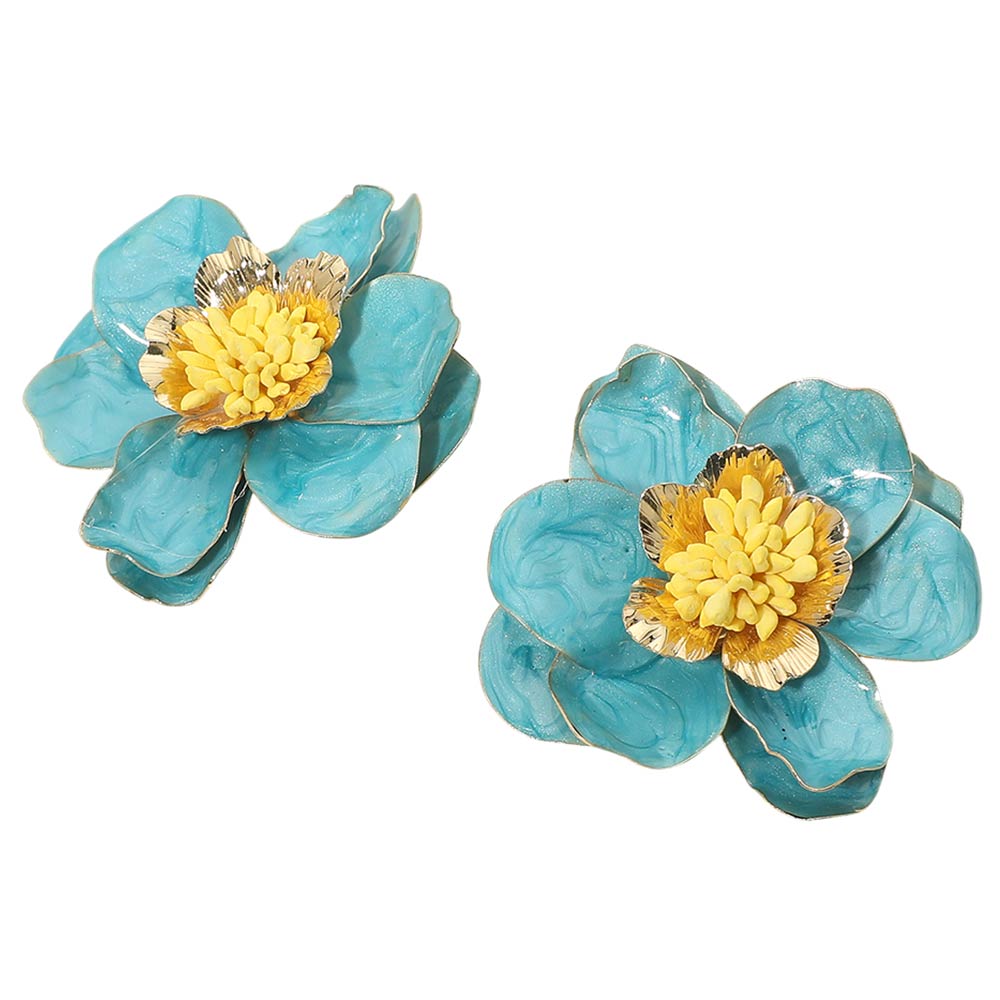 Details • Size : 2.3" X 2.5" • Post Back • These bold floral statement stud earrings feature layered petal detailing with a dimensional center for a sculpted, eye-catching look. Designed to elevate everyday outfits or special occasion styling, they offer standout appeal for boutiques, gifting, and trend-focused jewelry collections. • Lead and Nickel Compliant