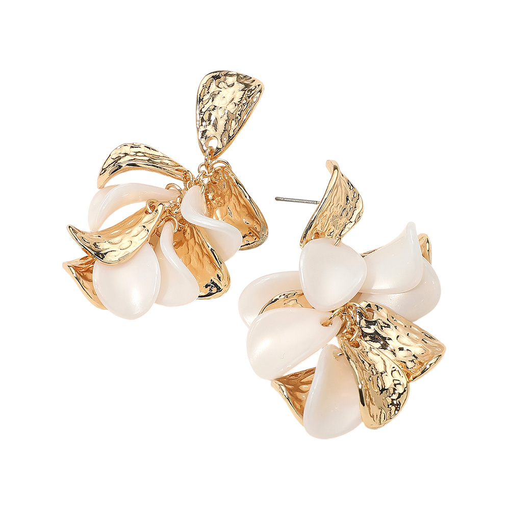 Bold Floral Design Textured Petal Statement Drop Earrings