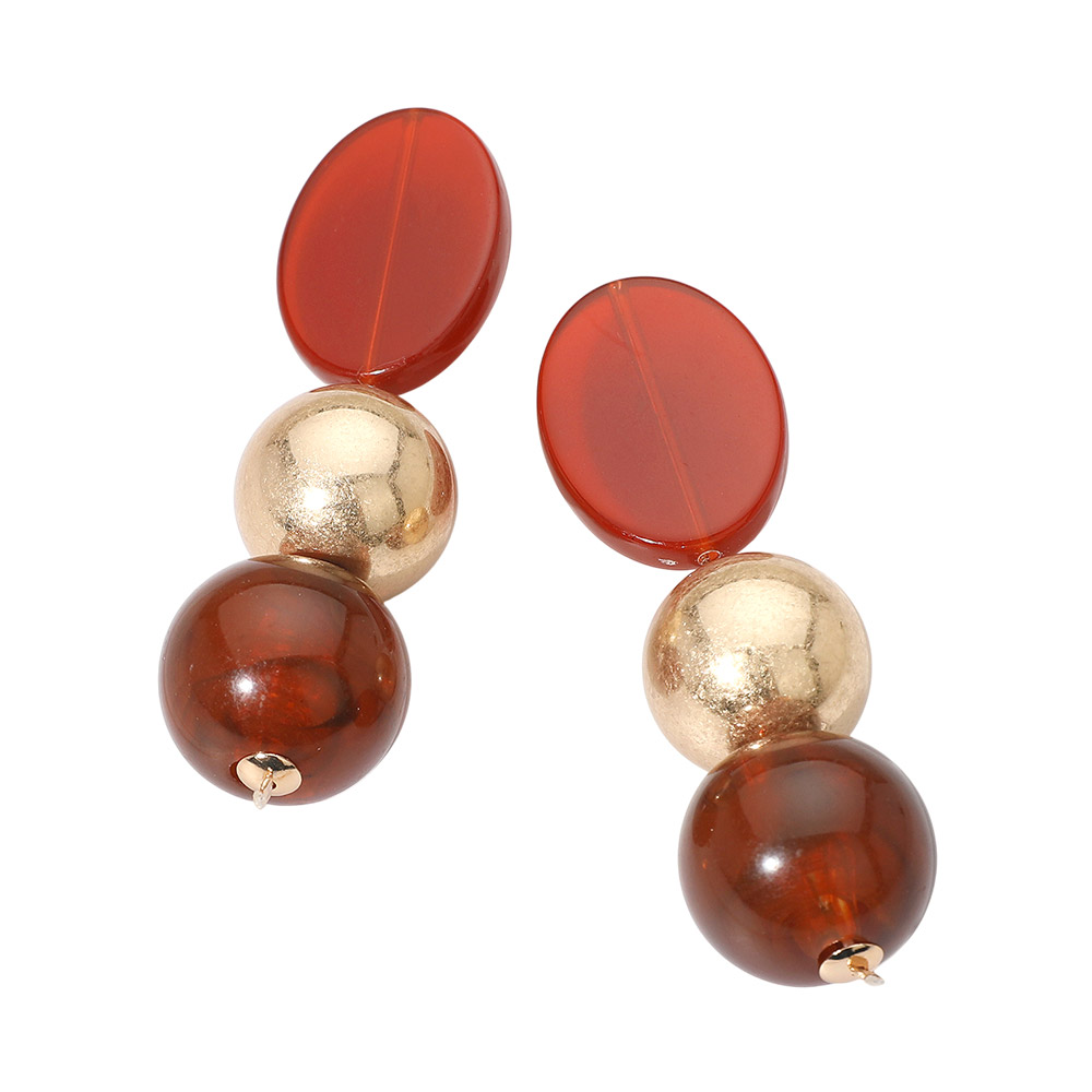 Details • Size : 1" X 3.25" • Post Back • Elevate your style with these triple bead drop earrings, showcasing a chic mix of smooth and glossy round shapes. Their bold geometric arrangement creates a striking balance between elegance and contemporary design, perfect for both everyday wear and special occasions. • Lead and Nickel Compliant
