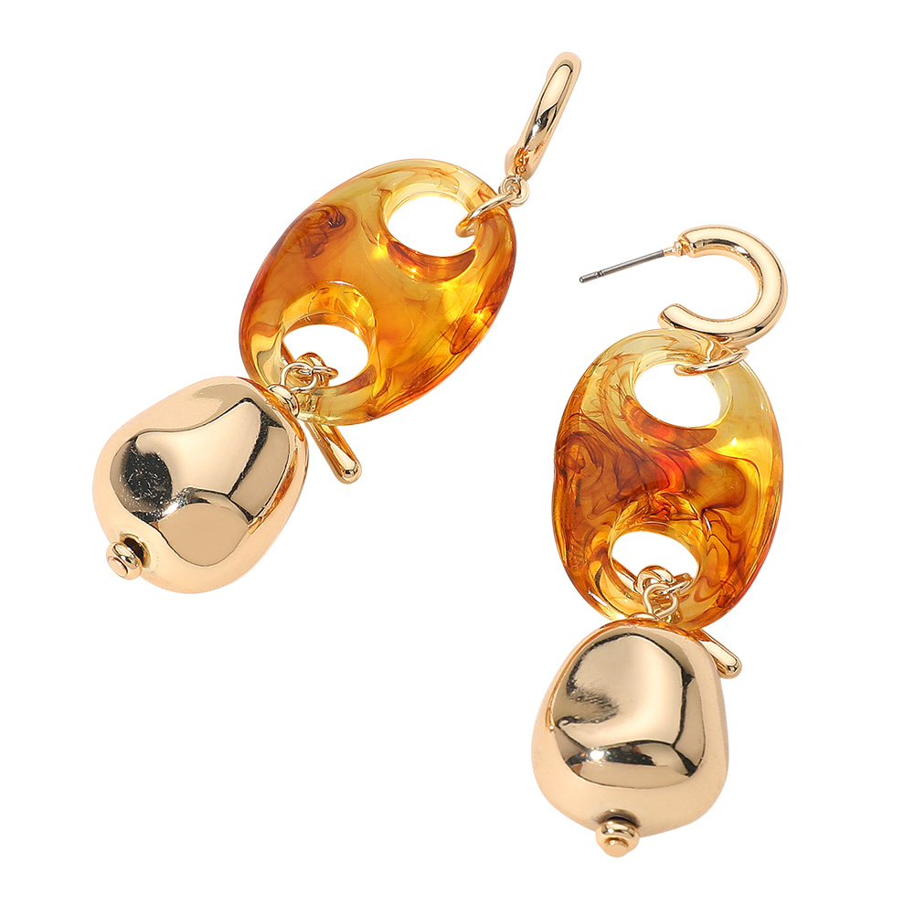 Details • Size : 0.8" X 3" • Post Back • Bold statement drop earrings featuring marbled oval links paired with smooth sculpted accents for a modern, artistic look. Their eye-catching shape and lightweight feel make them perfect for elevating everyday outfits, gifting, or adding a stylish contemporary touch to any ensemble. • Lead and Nickel Compliant