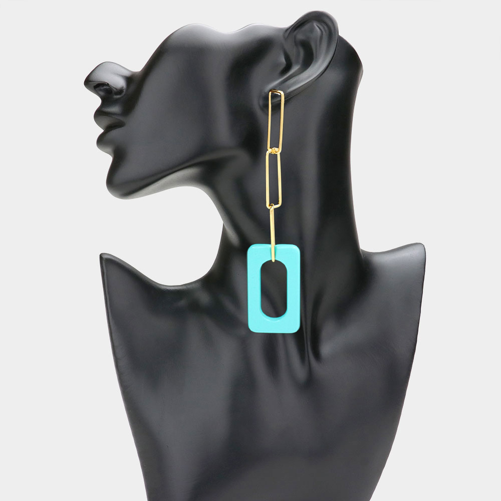 Bold Resin Square Link Paperclip Chain Drop Earrings