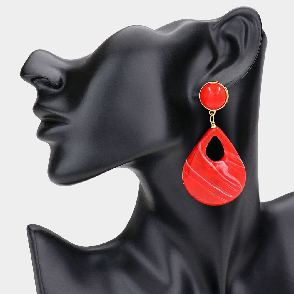Bold Resin Teardrop Cutout Dangle Earrings Bold Resin Teardrop Cutout Dangle Earrings