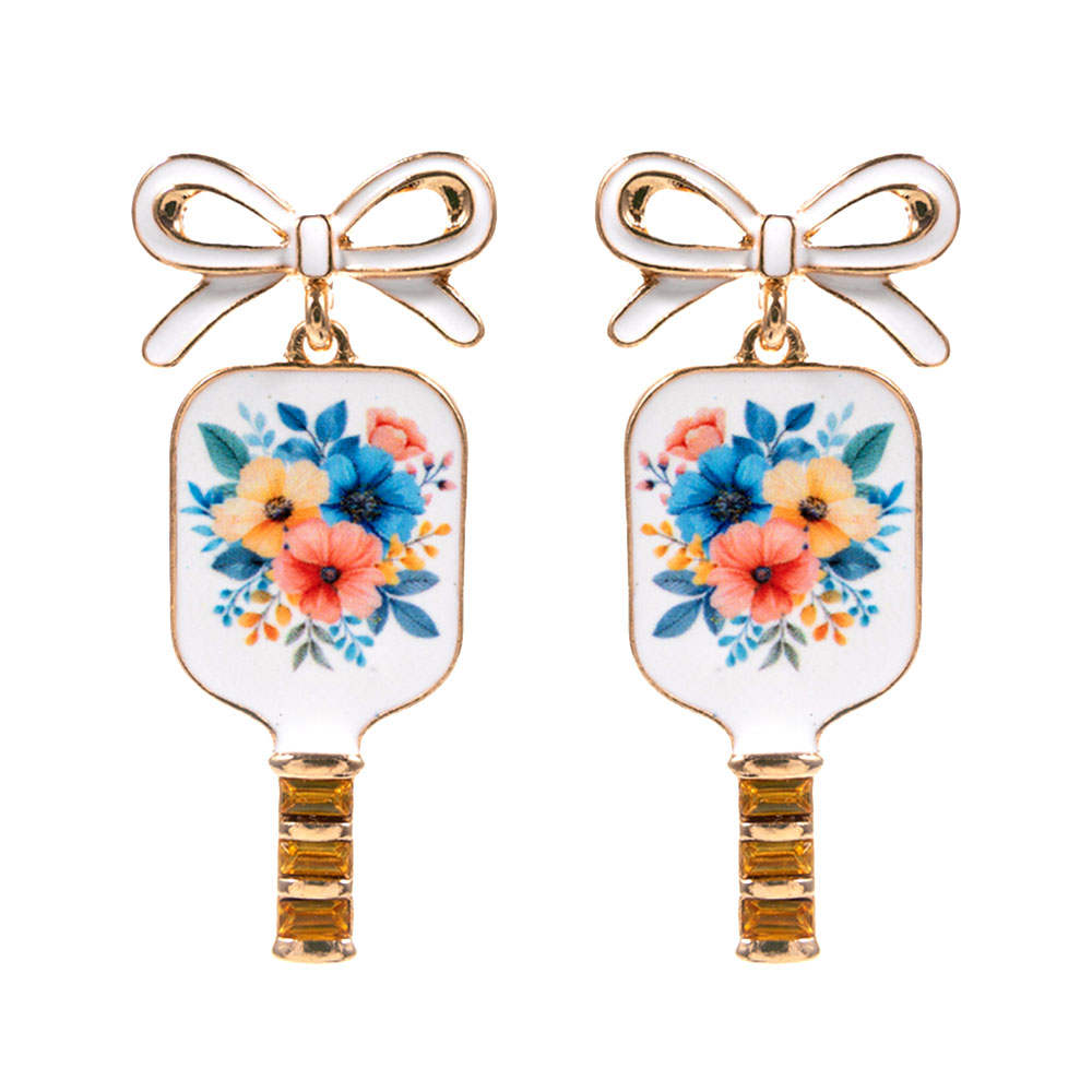 Bow Floral Pickleball Paddle Dangle Earrings Bow Floral Pickleball Paddle Dangle Earrings Bow Floral Pickleball Paddle Dangle Earrings