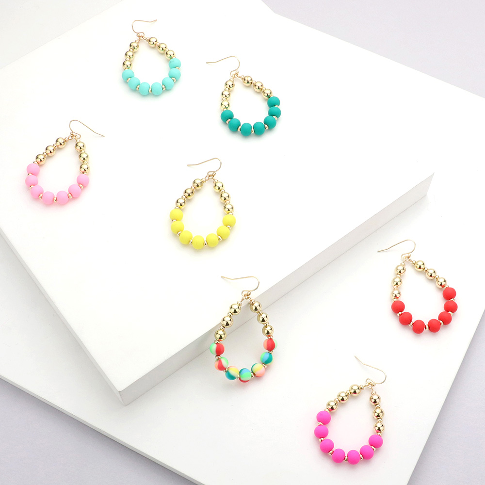 Colored Ball Pointed Open Teardrop Dangle Earrings