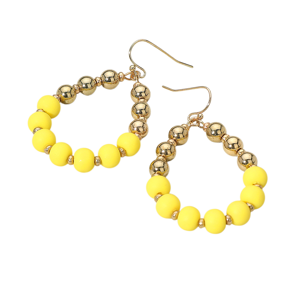 Details • Size : 1.3" X 2.2" • Fish Hook Back • Add bold charm to your look with these beaded hoop earrings featuring smooth matte beads paired with polished metallic accents. Lightweight and stylish, they’re perfect for everyday wear or special occasions, offering a versatile accessory that complements any outfit. • Lead and Nickel Compliant