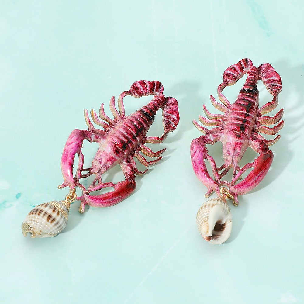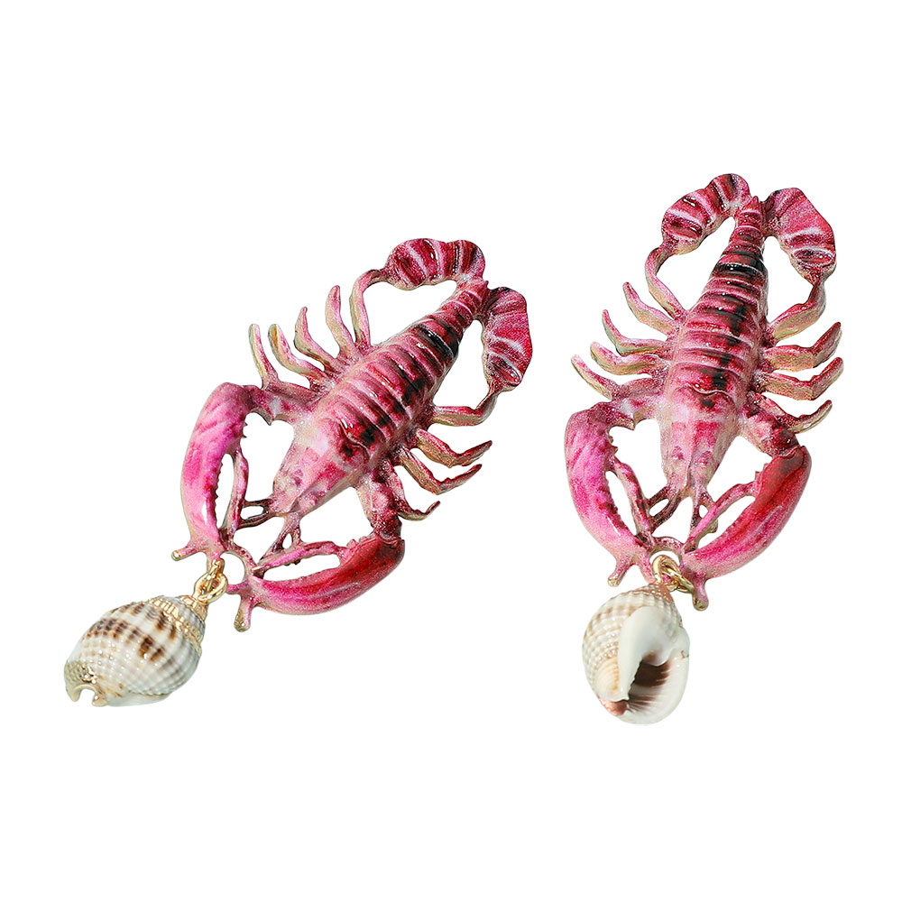 • Unique lobster dangle earrings featuring detailed crustacean design with dangling shell accents. Fun and bold accessory for beach lovers, summer festivals, or nautical-themed outfits. Lightweight statement earrings that bring playful coastal vibes and a whimsical ocean-inspired touch to your style.