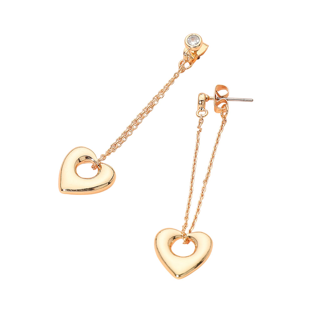 Details • Size : 0.5" X 2.1" • Post Back • Refined heart drop earrings with a delicate chained design that creates gentle movement and subtle sparkle. Perfect for adding romantic elegance to everyday outfits or enhancing evening looks, offering a lightweight, graceful accent that complements any jewelry collection beautifully. • Lead and Nickel Compliant