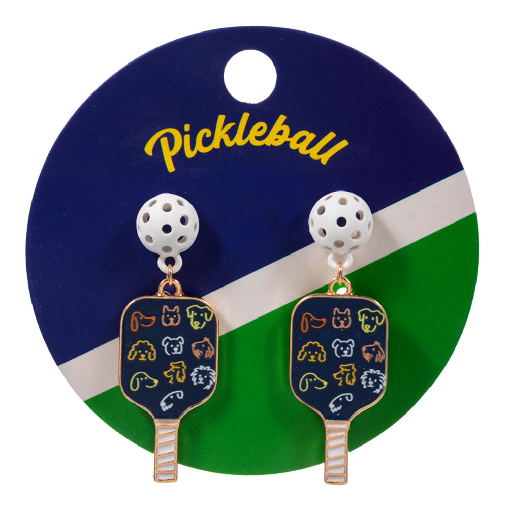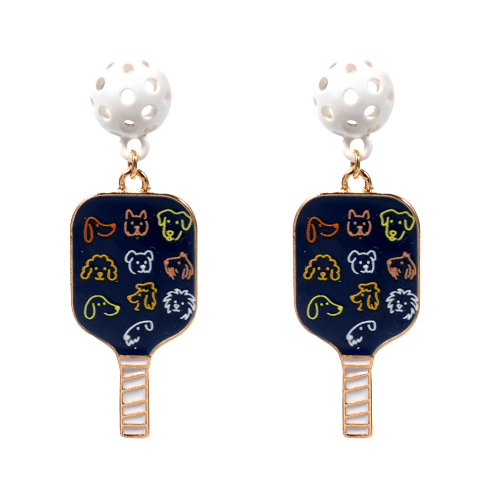 Dog Face Pattern Pickleball Paddle Dangle Earrings