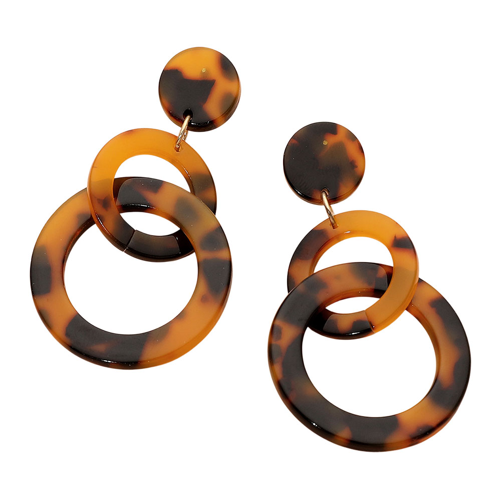 Double Tortoise Resin Link Drop Statement Earrings Double Tortoise Resin Link Drop Statement Earrings