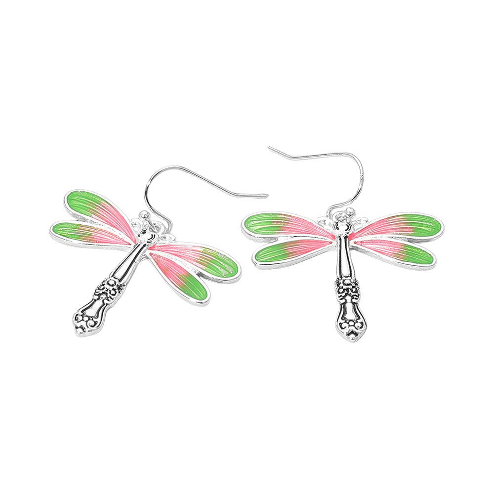 Details • Size : 1.3" X 1.4" • Fish Hook Back • These playful drop earrings showcase a delicate dragonfly design with detailed wings and a lightweight silhouette. Designed for comfortable all-day wear, they add a whimsical, nature-inspired accent to casual looks or seasonal collections. A great choice for gift assortments, boutique displays, and customers who love symbolic insect motifs with charming movement. • Lead and Nickel Compliant