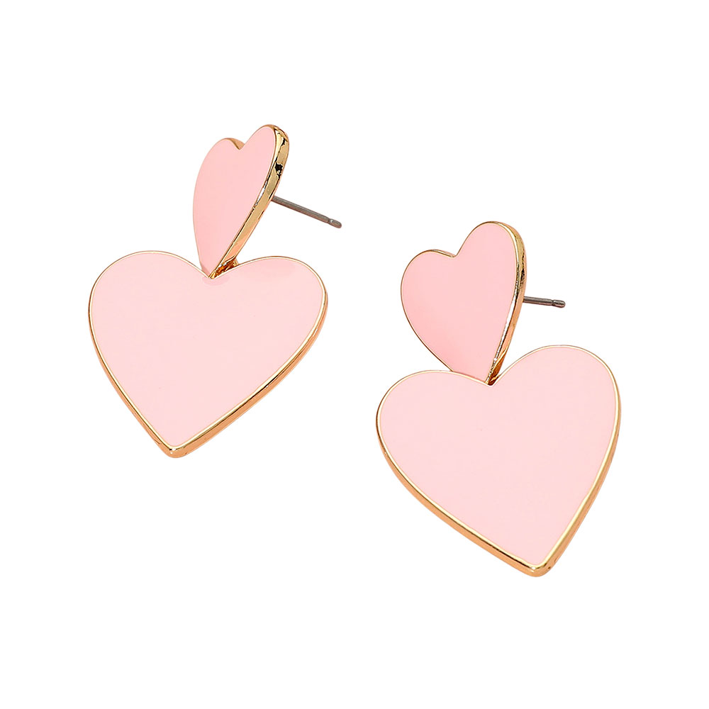 • Add a touch of romance to any outfit with these double heart drop earrings. Featuring a charming layered heart design with a polished finish, they bring playful elegance to your everyday or date-night look, making them the perfect statement of love and style.