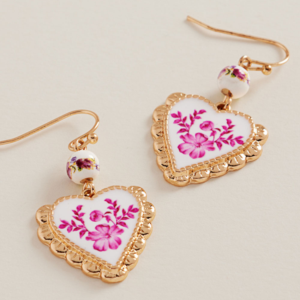 Enamel Floral Heart Frame Charm Drop Dangle Earrings Enamel Floral Heart Frame Charm Drop Dangle Earrings