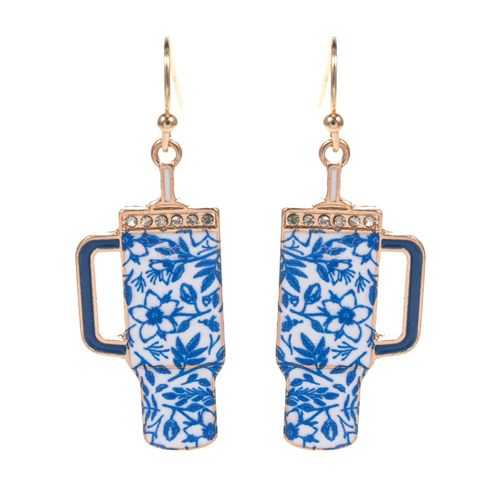 Details • Size : 0.6" X 1.6" • Fish Hook Back • Unique drop earrings designed as floral mugs with intricate patterns and rhinestone accents. A playful and stylish accessory, perfect for adding charm and personality to casual outfits or gifting to beverage lovers. • Lead and Nickel Compliant • Hypoallergenic