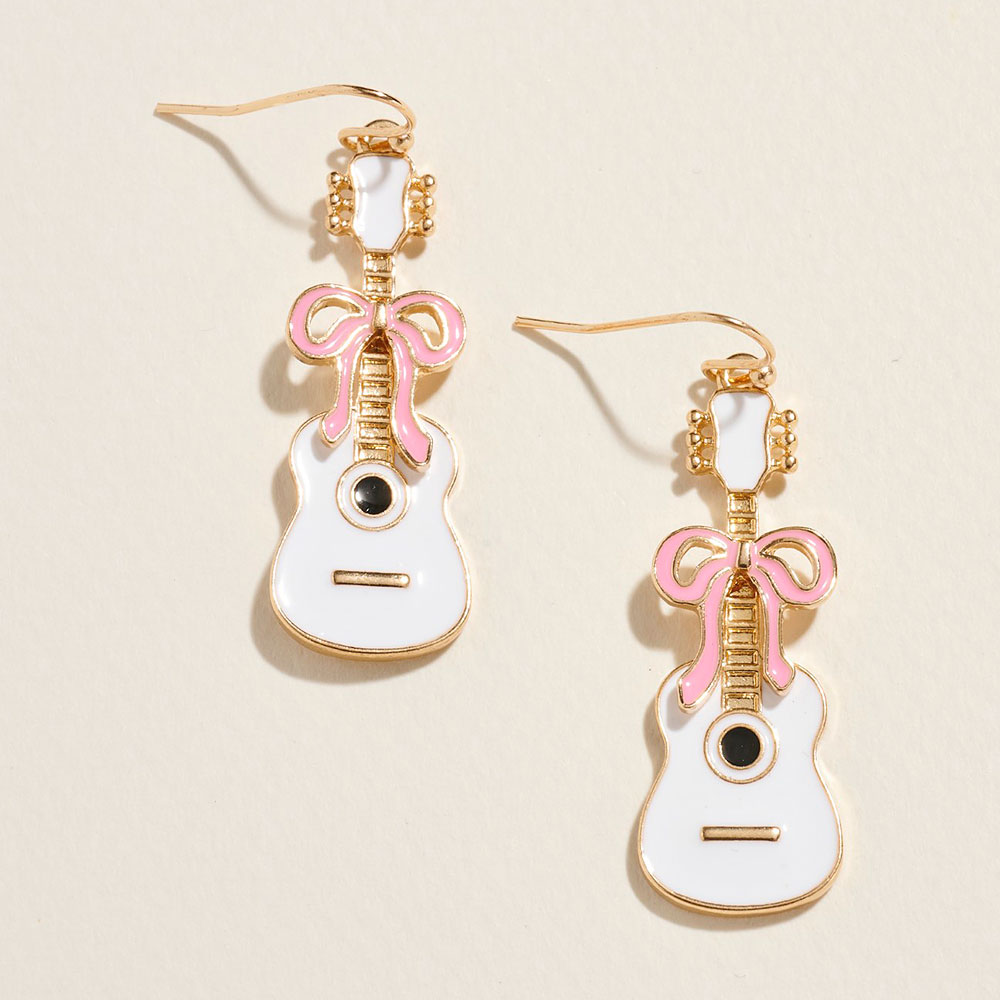 • Express your love for music with these guitar bow dangle earrings. Designed with charming details and a playful flair, they make a perfect accessory for concerts, festivals, or adding a touch of creativity to your outfit while showcasing your fun and artistic personality.