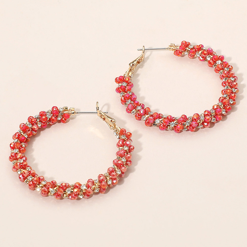Details • Size : 1.75" L • Omega Back • Elevate your style with these beaded hoop earrings featuring shimmering accents. Bold yet lightweight, they bring sparkle and charm to any look, perfect for parties, date nights, or everyday wear with a touch of glamour. • Lead and Nickel Compliant