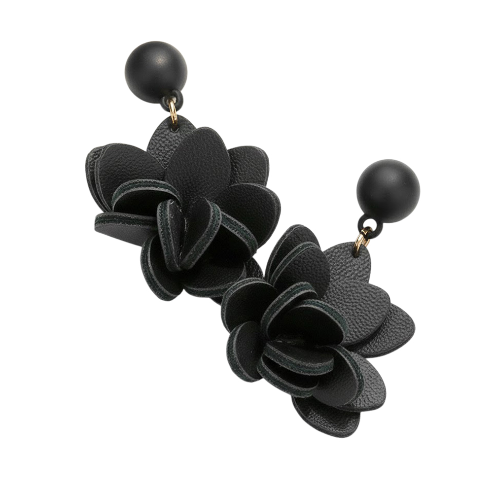 Details • Size : 1" X 1.75" • Post Back • Elegant flower drop earrings featuring layered, dimensional petals that create a soft sculpted look. A stylish accessory perfect for dressy outfits, special events or adding a graceful floral touch to everyday wear. Lightweight and eye-catching with beautiful movement. • Lead and Nickel Compliant