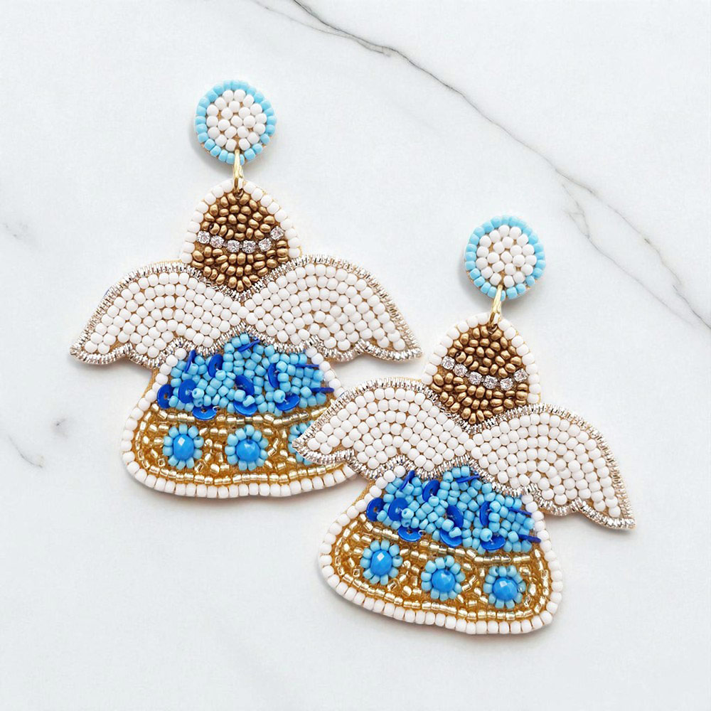 Felt Back Seed Beaded Angel Dangle Earrings